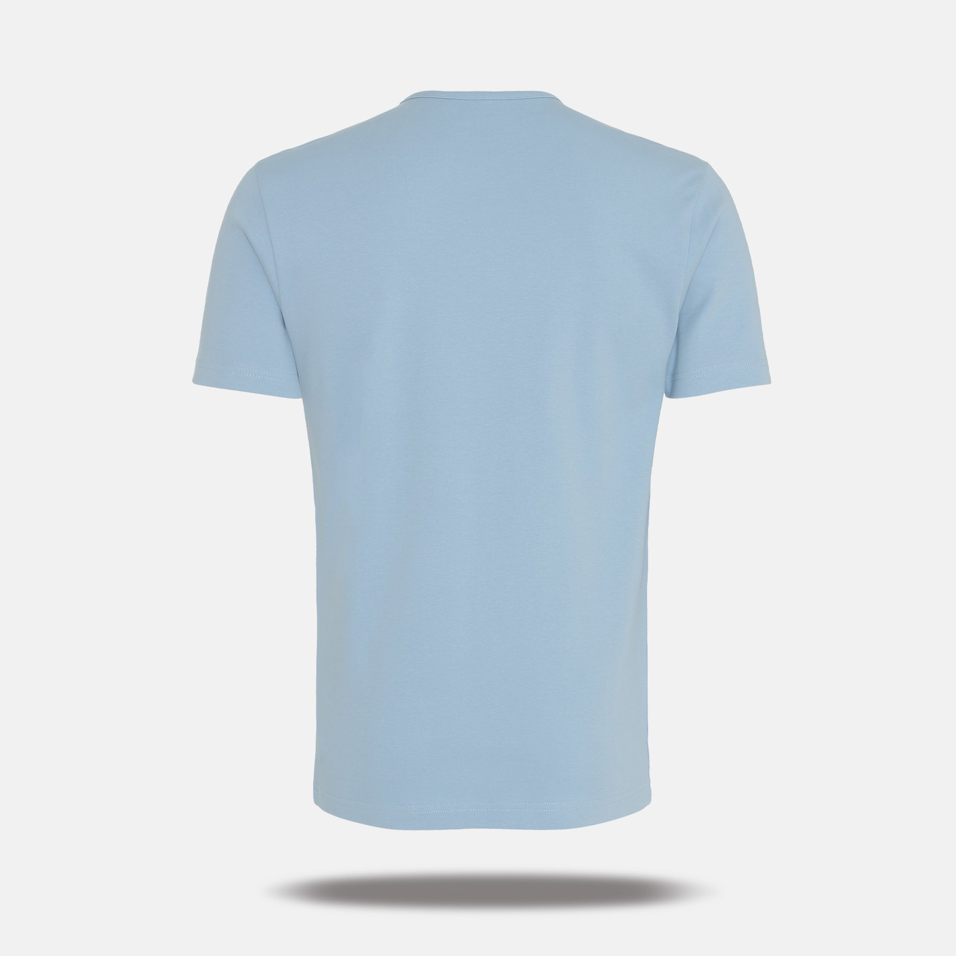 Økologisk interlock model med rund halsudskæring og smal rib, dobbeltstikninger og sidesøm.
